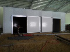 項目名稱:番禺紅橋速凍冷庫 項目地址:廣州番禺大羅塘凍品城 冷庫尺寸:13m*10m*4.8m 機組類型:75匹+45匹復(fù)疊機組,壓縮機采用德國原裝進口GEA博客壓縮機 本客戶是一家從事凍品批發(fā)的銷售型公司,本工程為廣東省內(nèi)單次進貨量最大,速凍效率最高的速凍庫,在速凍庫范圍內(nèi),首次采用復(fù)疊機組類型作為制冷主機,相比螺桿,雙級機大大的提高速凍效率。